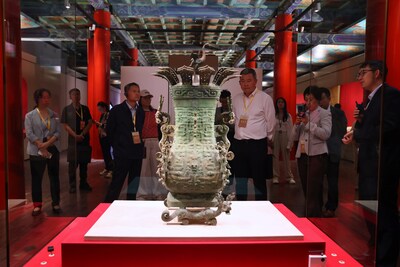 Lianhe Fanghu, a bronze jar with lotus and crane decorations, on show at the special exhibition, A Century of Stewardship From the Forbidden City to the Palace Museum.