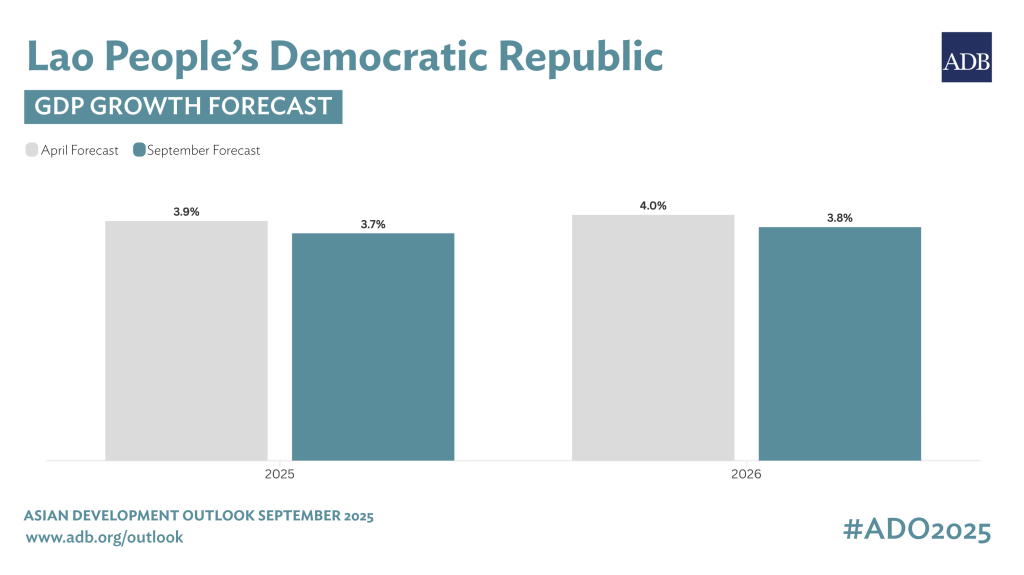 The Asian Development Bank (ADB) lowers Laos’ 2025 growth forecast from 3.9 percent (April) to 3.7 percent (September) amid debt vulnerabilities and trade challenges. (Photo credit: Asia Development Bank)