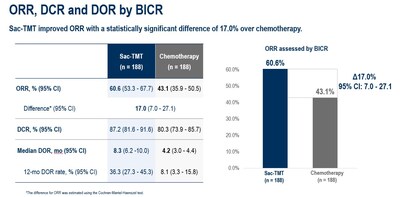 Sac-TMT significantly improved ORR as compared to chemotherapy (60.6% vs 43.1%)