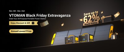 LOS ANGELES, Nov. 7, 2025 /PRNewswire/ — VTOMAN, a leading name in portable power technology, today announced its highly anticipated Black Friday Extravaganza, featuring record-breaking discounts on its best-selling portable power stations and solar panels. Running from November 6 through December 2, 2025, this event marks VTOMAN‘s biggest promotion of the year — empowering adventurers, homeowners, and everyday users to experience reliable, sustainable energy at the best prices of the season.