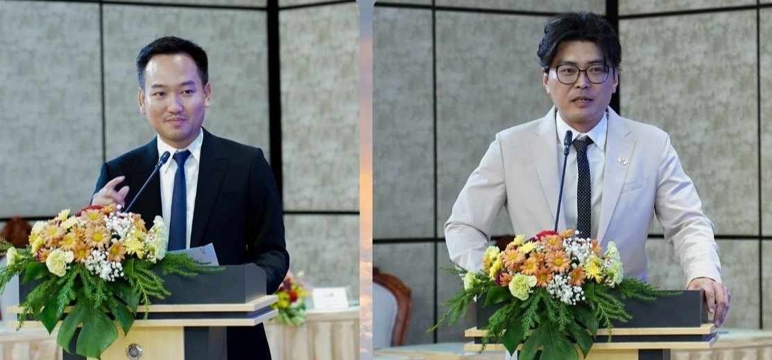EDL-Gen partners with South Korea’s CS Tech to develop floating solar and carbon credit projects, advancing Laos’ green energy and sustainability goals. Souksavath Sosoupanh, Managing Director of EDL-Gen (left) and Seo Dong-myeong, Managing Director of CS Tech (right). 10 November 2025. (Photo credit: EDL-Generation Public Company)