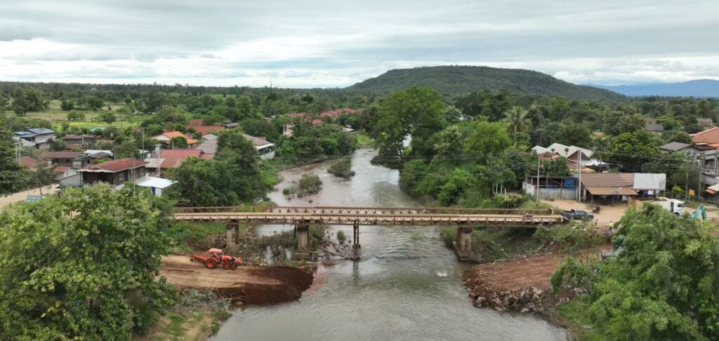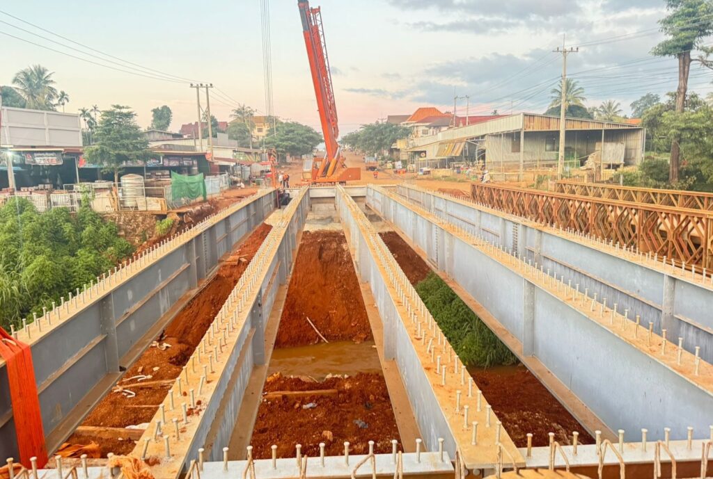 Physical construction began in June 2025, with progress at each bridge as follows: Houay Namsan 65 percent, Houay Tapoung 72 percent, Houay Pao 60 percent, and Se Set Bridge, where works are ongoing and the temporary bypass is already in use.