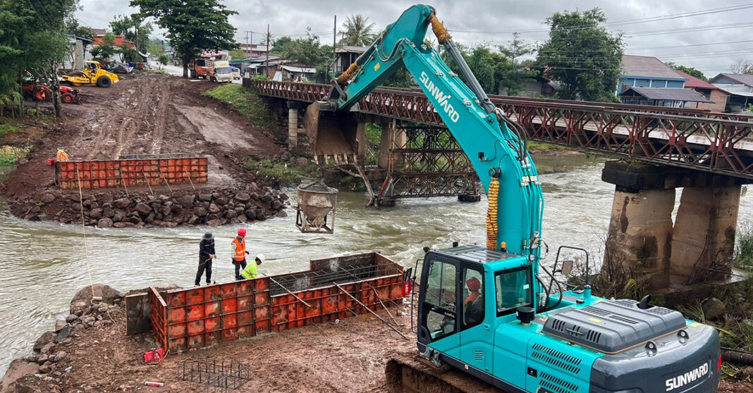 Physical construction began in June 2025, with progress at each bridge as follows: Houay Namsan 65 percent, Houay Tapoung 72 percent, Houay Pao 60 percent, and Se Set Bridge, where works are ongoing and the temporary bypass is already in use.