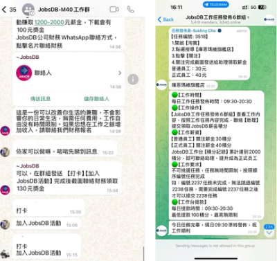 Fraudulent messages often include phrases like ‘part-time activities,’ to attract individuals with promises of monetary rewards for simply ‘checking in’ or completing tasks.