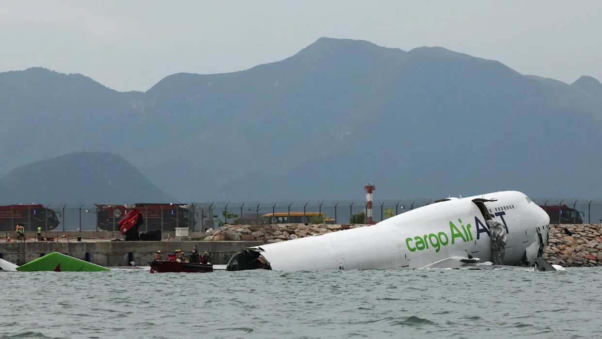 Two killed as cargo plane skids off Hong Kong runway